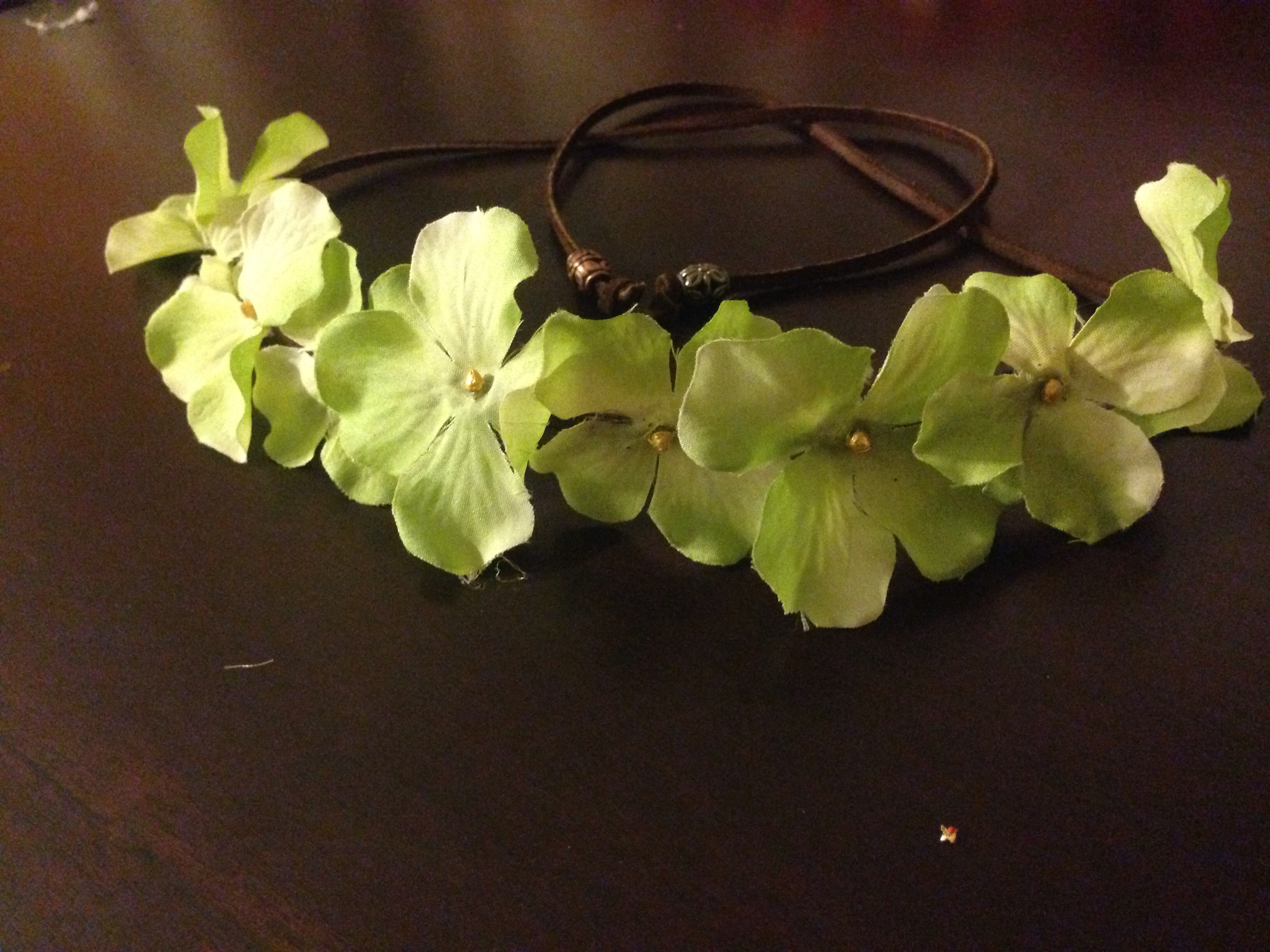 Lovely green hydrangea petals put together in a beautiful floral head-wrap